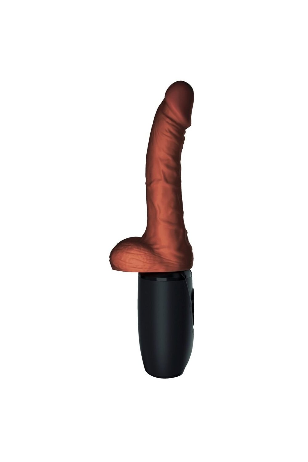 Lifelike penis vibrator 7.5" Thrusting Cock with Balls from King Cock made out of skin-like Fanta Flesh material with a warming function and a thrust function.