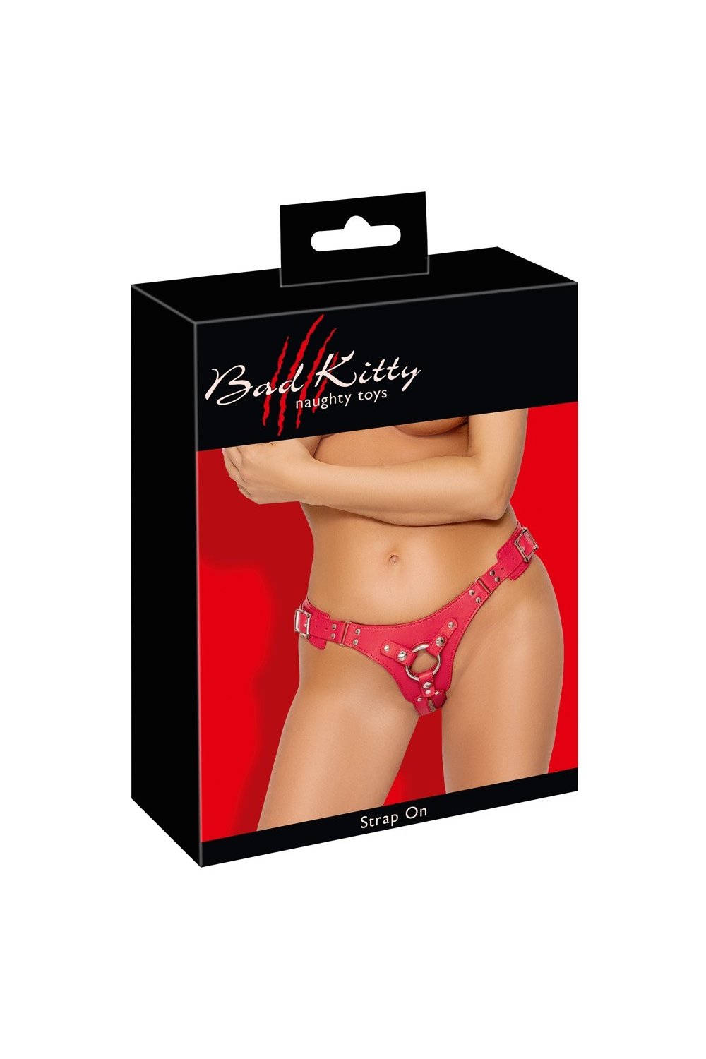 Red strap-on from Bad Kitty in a stylish leather look with lacing in the back. The size is adjustable for a perfect fit (size S-L).
