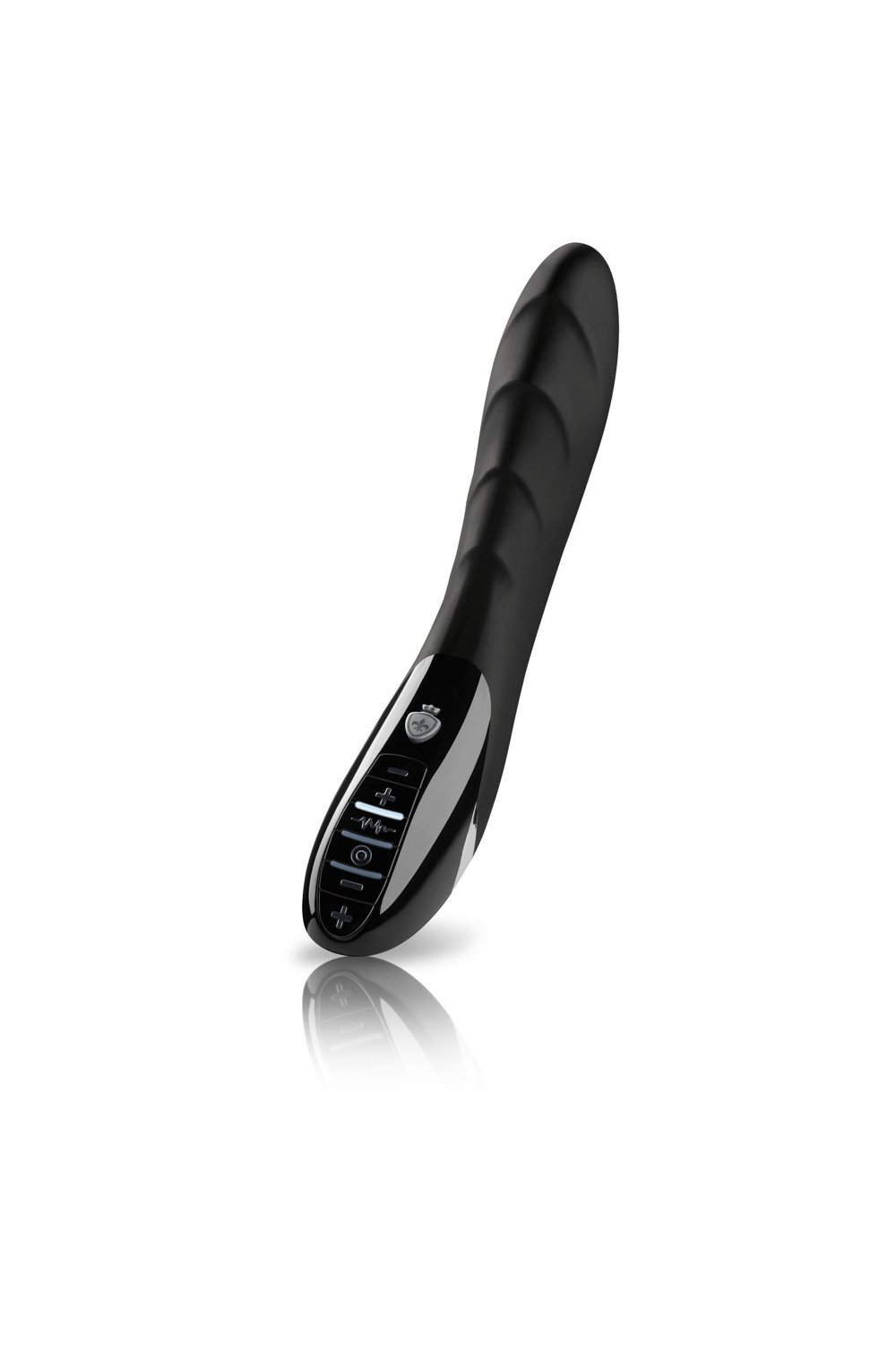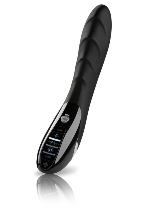 Vibrator with a stimulating structure. Its two lots of vibrations and electrical current pleasure simultaneously without the need for an additional device or cable. The eight vibration programs, five different stimulating currents and a programme that helps her train her pelvic floor muscles can easily be adjusted