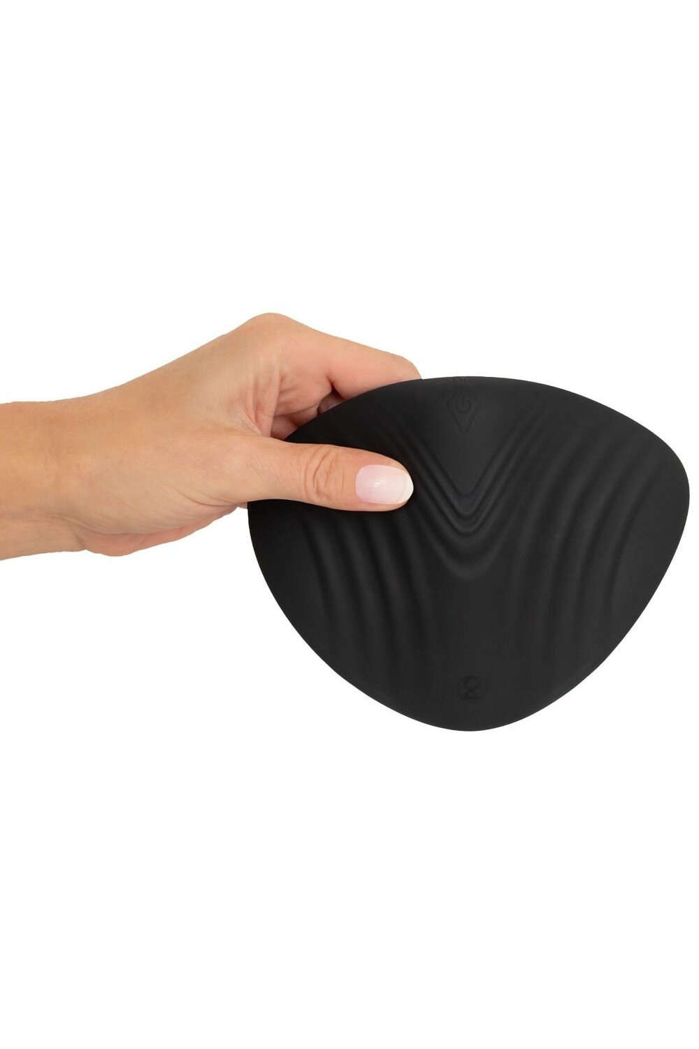 The RC LAY-ON multi toy from Coup!es Choice comes with a remote control. The velvety soft vibro-toy is very versatile because it can be used as a solo or couple's toy. It can be used as a lay-on vibrator, a vibro-cushion to sit on, a panty vibrator or an easy-to-hold handjob masturbator.
