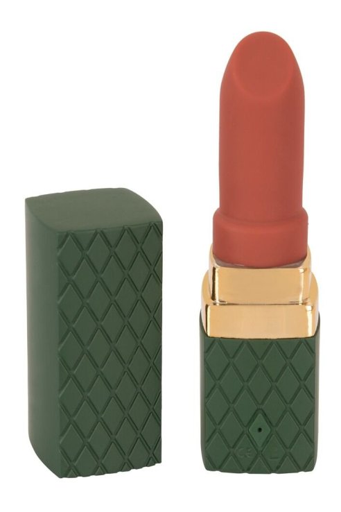 The mini vibrator Luxurious Lipstick Vibrator from Emerald Love has a beautiful diamond pattern that looks just like a real lipstick – with or without its protective lid.