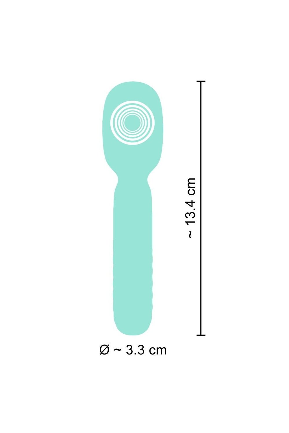 The very light mini wand is made out of silicone with a velvety soft touch texture which means that it can glide over the skin almost on its own and can be easily inserted too. The stylish diamond texture around the bottom of the mini massage wand (the control panel) makes it easy to hold. Perfect for toy beginners!