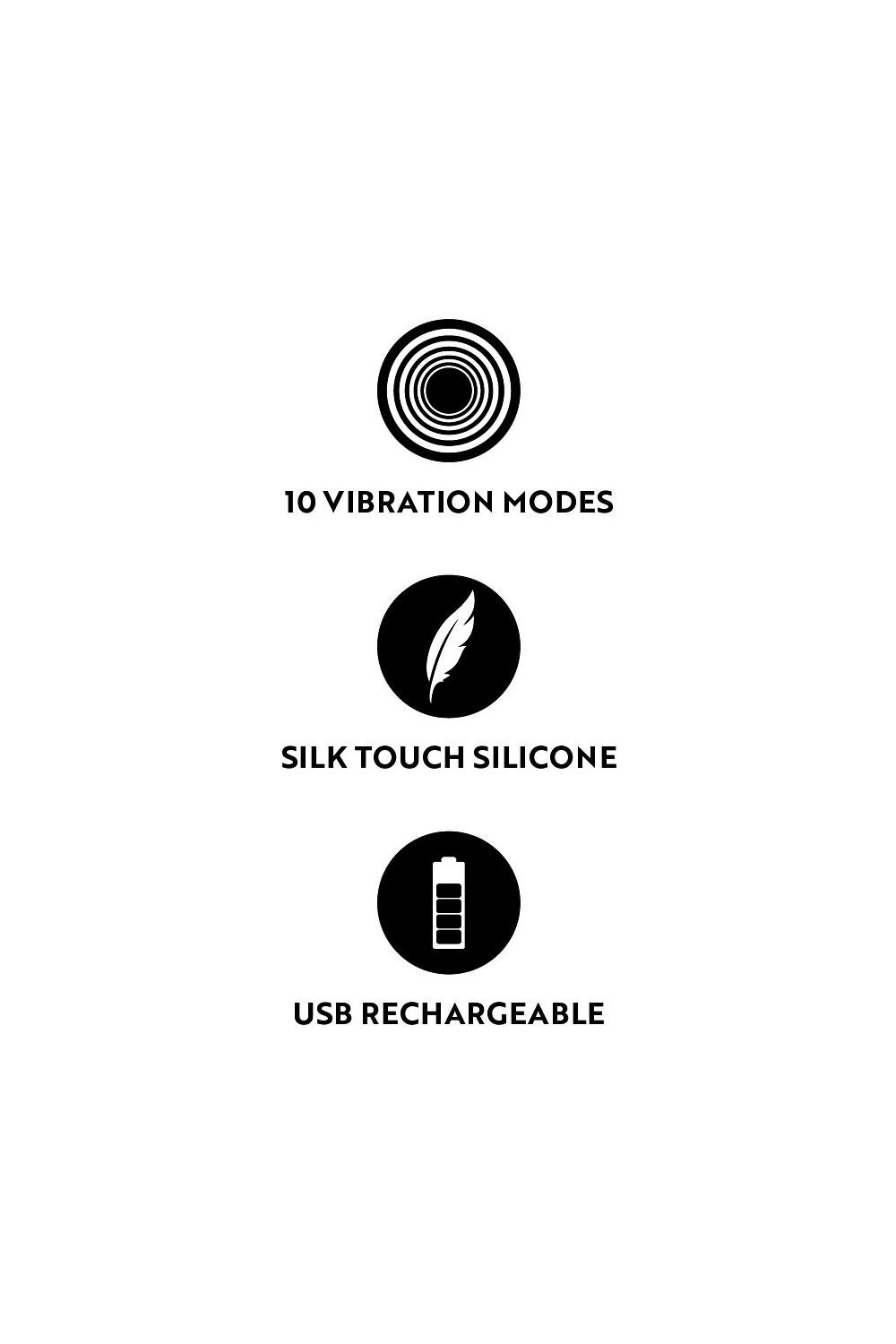 The velvety soft silicone vibrator’s vibro-tip pleasures external hotspots and intimate areas with its gentle stimulating texture. It is small, quiet and discreet which makes it the perfect upgrade for solo and couple’s play.