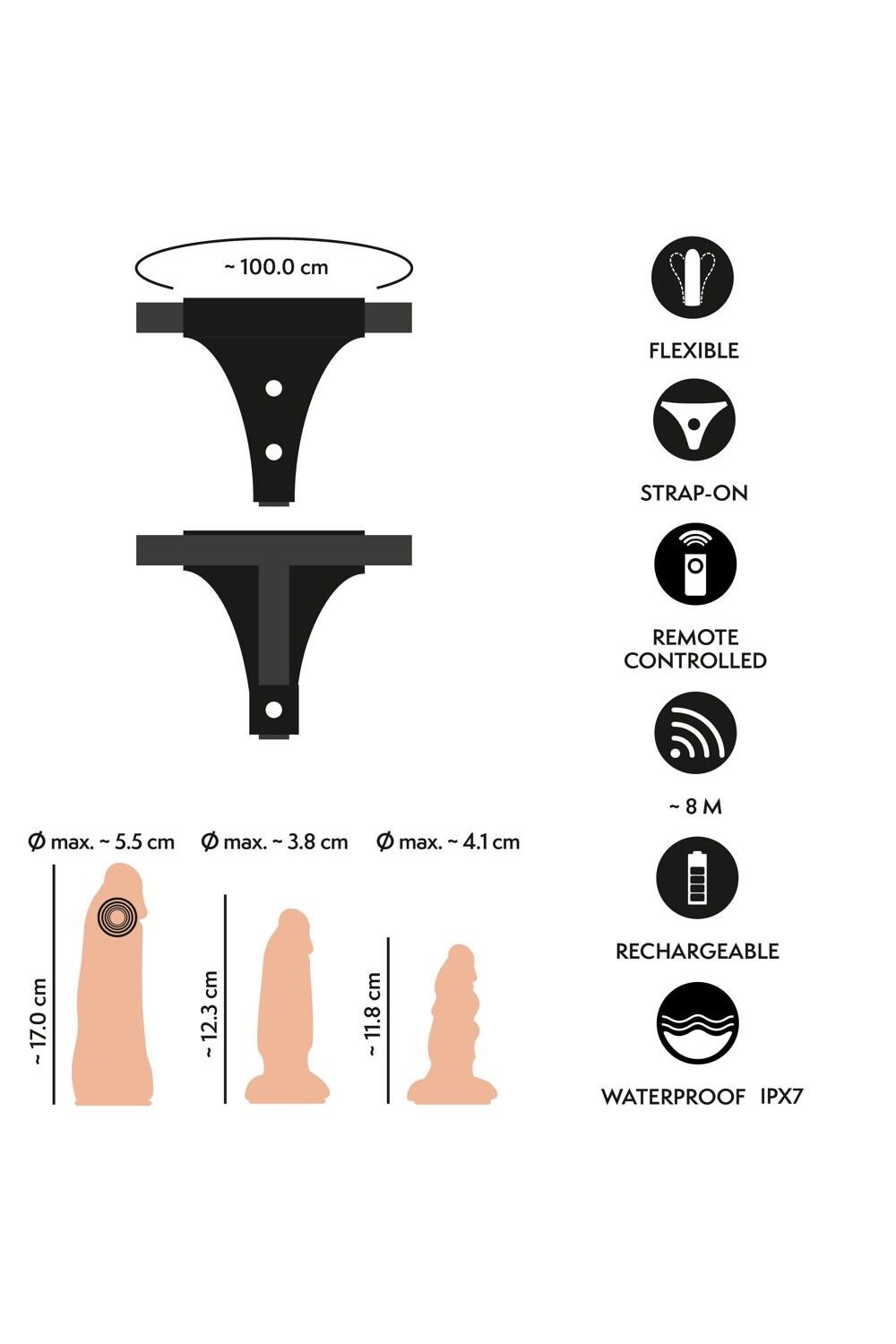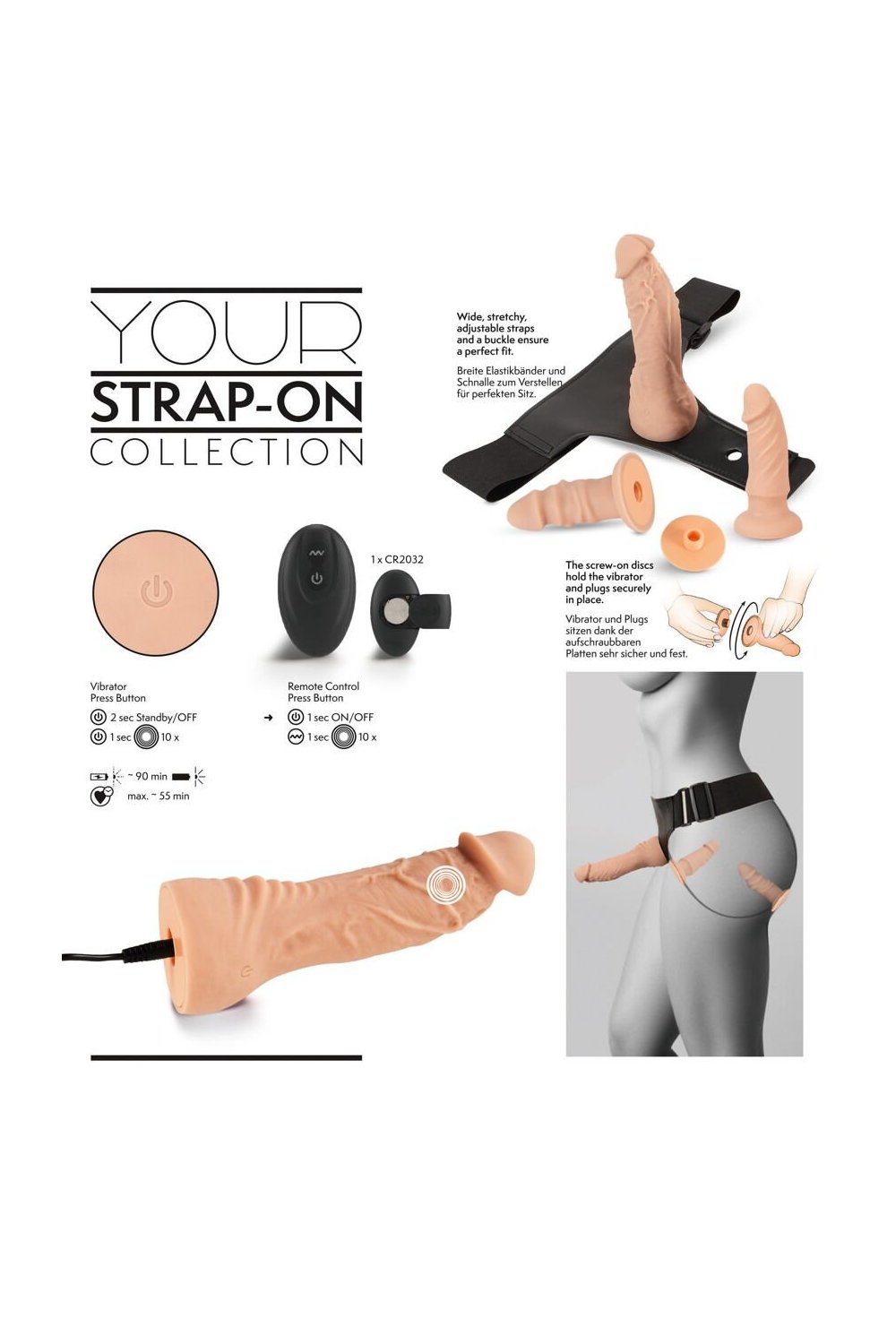 Set strap-on iz Your Strap-On kolekcije od You2Toys sa podesivim strap-on pojasom, realističnim vibratorom koji uključuje daljinski upravljač i 2 različita realistična dilda za svačiji ukus po meri!. Vibrator i dildi se mogu lako pričvrstiti na unutrašnju i/ili spoljašnju stranu pojasa, na vama je da izaberete orgazmičnu igru kojom želite da zadovoljite istovremeno i sebe i partnera!